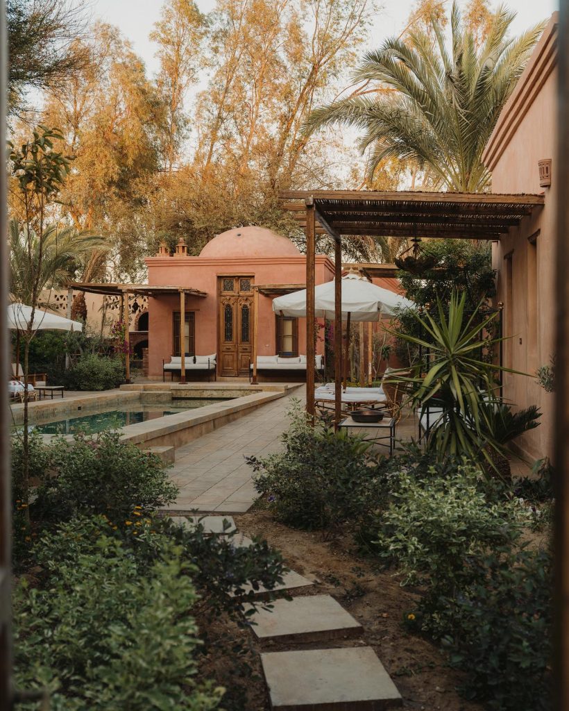 Al Moudira isn’t new — it’s been dazzling guests since 2002. But maybe it’s new to you, and frankly, that’s a shame we’re here to fix. It was dreamed up by Zeina Aboukheir, a Franco-Lebanese interior designer. She clearly looked at the barren sand dunes and thought, “You know what this needs? Arches. And tiles. And maybe a fountain or ten.” So, she did all of that, so that we could enjoy this part-Arabian-Nights, part-bohemian-fever-dream hotel. It’s a sprawling palatial maze of 54 suites, frescoed ceilings, and private courtyards. Then, in 2022, the hotel got a fresh chapter, thanks to Florian Amereller, a lawyer-turned-hotelier who decided to make the fantasy a bit more sustainable. So, he added solar power, an organic farm, and some well-placed TLC. Don’t worry though — the soul of the place is untouched, and the vibe is still firmly “sultan chic.”