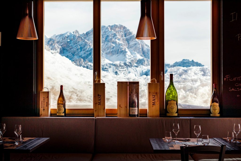 Nothing warms you up faster than a glass of wine. And no one knows this better than Masi. Producing wine since the 1700s, Masi has brought their succulent selection of wines to new heights – literally. Perched at an altitude of 1778 meters, Masi Wine Bar al Druscié offers vibes, views, and vino. Visitors to the wine bar can sip on Masi’s famous Amarone, while taking in the lofty views of Monte Tofana, Monte Cristallo and the sweeping Cortina valley.