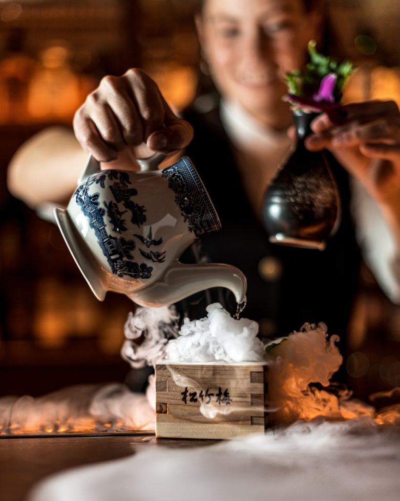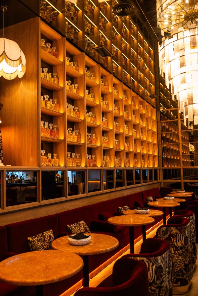 The next day, the group regrouped at Castellana 8, the elegant lounge inside the NH Collection Hotel. This space feels hushed and grown-up, all dark wood, velvet booths, and bartenders who don’t flinch when you order something off-menu at an odd hour. Here, the drinks are more restrained. The smoky mezcal sour arrives with a slice of dehydrated lime balanced on top like a tiny sculpture, and small plates float out of the kitchen: mini beef Wellingtons, grilled sea bass in miso glaze, and burrata that practically slides off the spoon. When things need a breather (but not a wind-down), Castellana 8 is the kind of place you drift into. It’s elegant, hushed, and just removed enough from the main drag to feel like a secret.