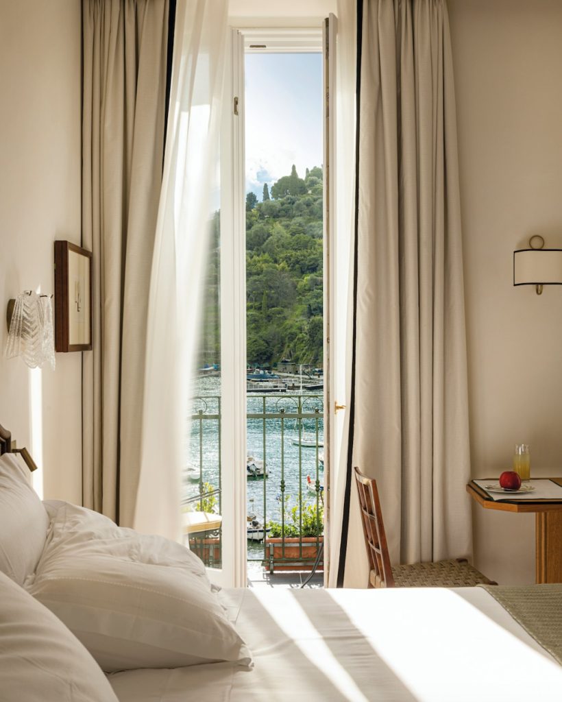This hotel is the perfect front-row seat to Portofino. Splendido Mare has only 14 rooms and suites, which makes it feel more like your fabulously wealthy friend’s villa. The design is fresh and bright, with nautical touches, soft wood, and marble bathrooms that encourage extended mirror time. DaV Mare is the house restaurant and does elevated Ligurian food with a thoughtful kick—go for the sea bass. There’s no spa here, but you’ll find its sister property, Hotel Splendido, up the hill with a full wellness offering and pool. A shuttle connects the two, so you can float between harbor glam and hillside calm.