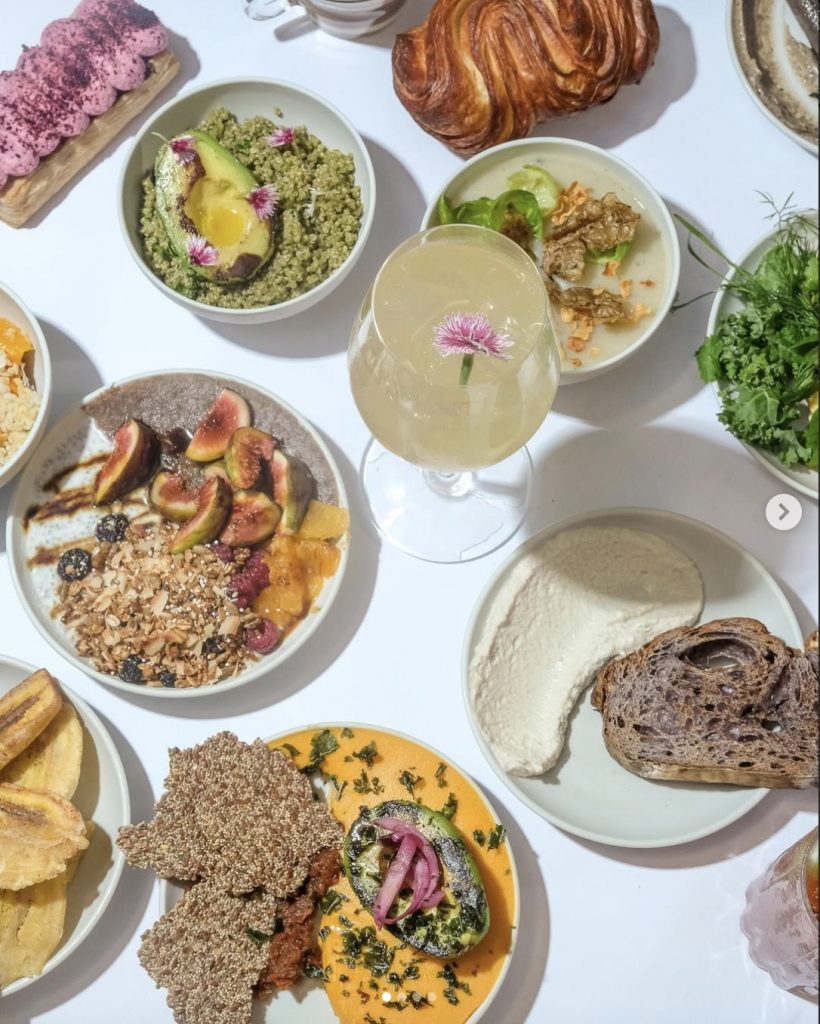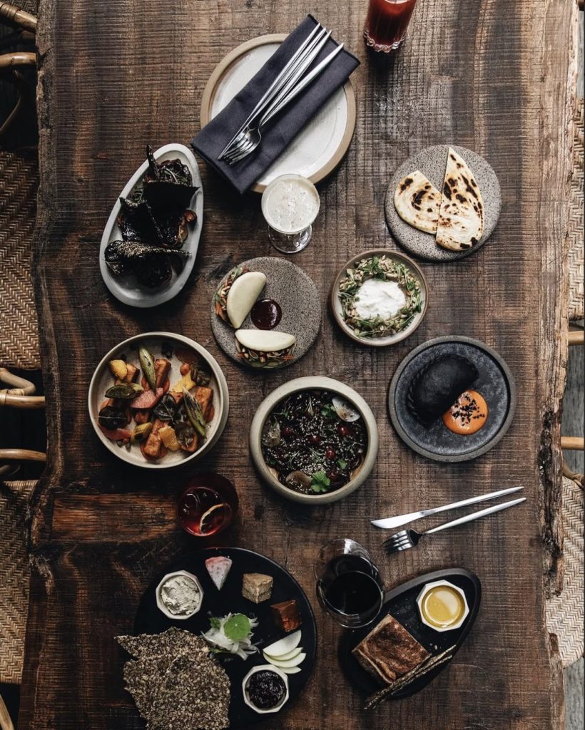 If you’re after a mix of a dimly lit, sultry spot and a bright, plant-filled outdoor space, Sacro offers both. The plot twist is that they have an entirely vegetarian menu. That said, many of their dishes are disguised to look like traditional meat preparations. There’s the bad kind of drama, and then there’s drama as an aesthetic, and Sacro has the latter down. The patio mentioned before is called the Jungle patio, with a mass of tropical plants throughout, and the interiors with luxurious midnight blue velvets. Sacro’s boldness follows through in their plates, like the black (activated charcoal) empanada filled with smoky mushrooms, or their kimchi dumpling with a ginger foam topping. Other creative spins on meat-inspired dishes include a tomato and fig tartare and the ‘Southeast Green Curry made from bamboo, tofu, mango, and coconut milk.