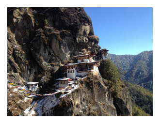 This is a must on the Bhutan travel guide. Hike up the famed Tiger’s Nest, or Taktshang Goempa. One of Bhutan’s most revered monuments, the “Tiger’s Nest” temple hangs off the face of a cliff. It is almost 3,000 feet above the valley floor. Legend states that Guru Rinpoche flew into Bhutan on a mythical tigress and meditated in a cave. They then brough5 Buddhism to Bhutan. Tradition holds that the Guru concealed various forms of dharma treasures known as ters among the rocks in the cliff.