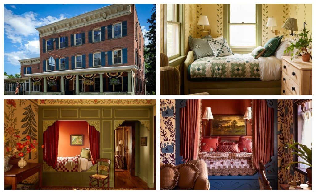 If you like to stay in modern, sleek, and minimalist properties, move along. The Six Bells Countryside is anything but contemporary and polished. Instead, it’s a riot of decorative objects, painted furniture, wallpapers, and textiles that will transport you to 19th-century rural America. Handmade quilts and needlepoint pillows grace the beds, and every wall, armoire, and armchair features whimsical patterns. This inn’s decor is all about cozy, twee vibes. And if you like what you see, you can purchase it. You’ve fallen in love with the wooden chair in your room? Make it yours. You think the ruffled cushions are adorable? Take them home. The Feathers, the on-site tavern, is just as beautiful and serves hearty early-American cuisine.