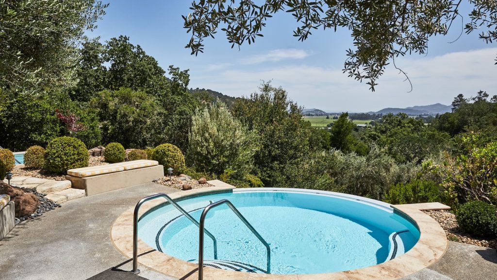 The spa is one of Auberge du Soleil’s quiet triumphs. Six treatment rooms are complemented by indoor and outdoor relaxation spaces. There is also a seamless thermal circuit that includes steam, sauna, and outdoor pools. The infinity-edge hot tub, located high above the valley, is the star. Especially at sunset, when the hills are aglow with fading sunlight.