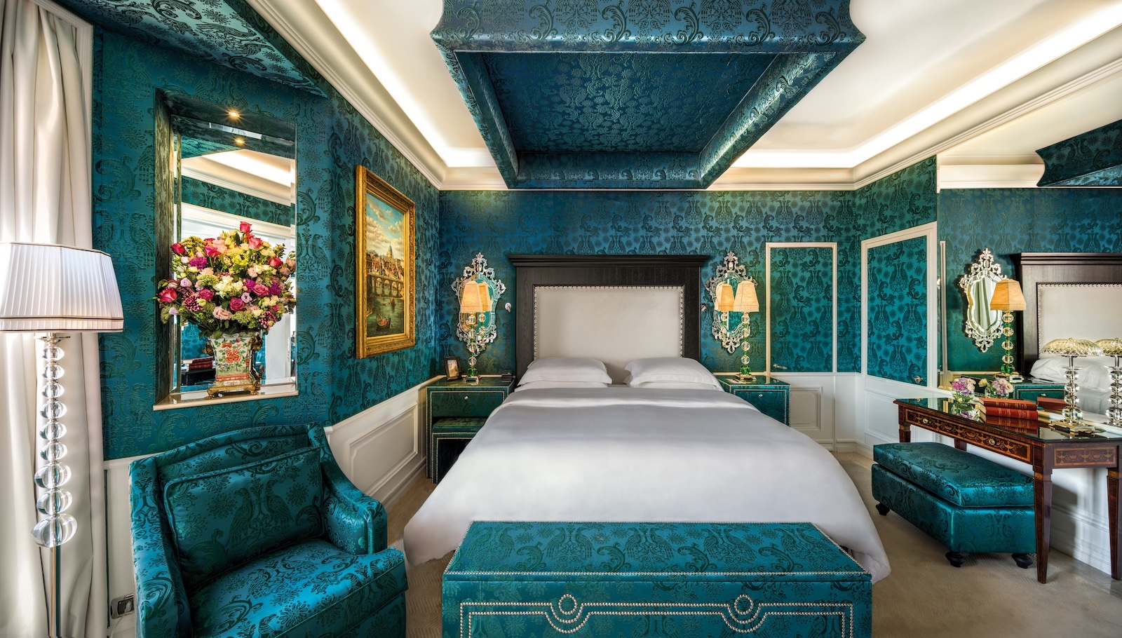 If I were to go back, however, I would opt for the Villa Medici Suite on the seventh floor of the property. Because it’s been renovated recently, the decor is a lot bolder and more appropriate for such an emblematic hotel. I particularly love the abundance of patterned teal textiles and the antique furnishings. But, the biggest appeal of the suite is the 1,600-plus-square-foot panoramic terrace. From up there, Rome and its many domes stretch in front of you. It’s even better than the view from Emily’s Roman apartment in the latest episode of Emily in Paris, which is no small feat.