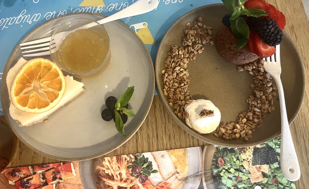Leave room for dessert—the cheesecake is unlike most vegan versions. Instead of relying on guar gum, the chef stabilizes it with rice mash from sake production and topped with a light yuzu glaze that cuts through the richness. We promise that after a four-course meal at Ippudo V, you’ll leave feeling fully satisfied—no nap or food coma required.