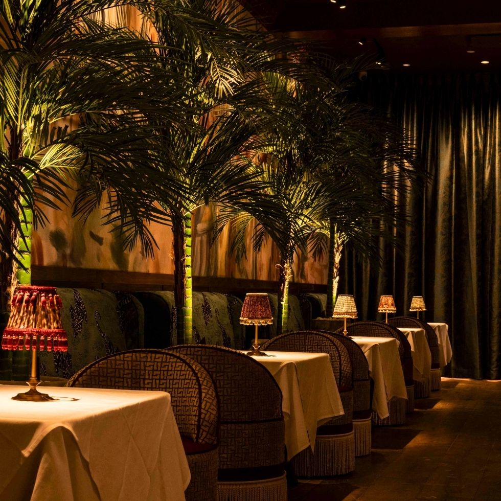 First let’s start with the room itself, which is a beautiful space, reminiscent of a Parisian bordello — in a good way. Rich red velvet, heavy drapes and damask prints and chandeliers fill the open room. They add a garden-like feel with green foliage throughout. In essence, they chose a theme and leaned way into it. The team at Le Bar Penelope clearly wanted to convey luxury with an air of formality that would inspire guests to dress to impress.