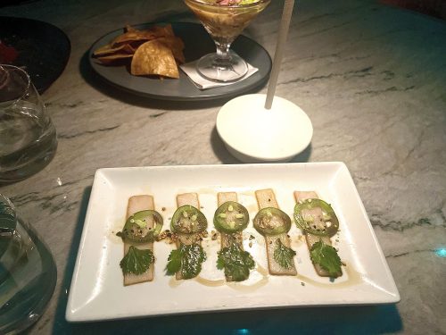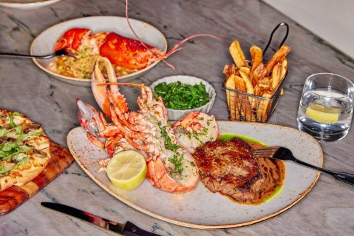 The shrimp ceviche is a lime lover’s dream, accompanied by tortilla chips for dipping into the zingy sauce that gathers at the bottom. Craving carbs? Choose from a variety of flatbreads, or stick with the seafood theme with tartare, Shrimp Kataifi (move over Dubai chocolate), or a classic caviar bump.