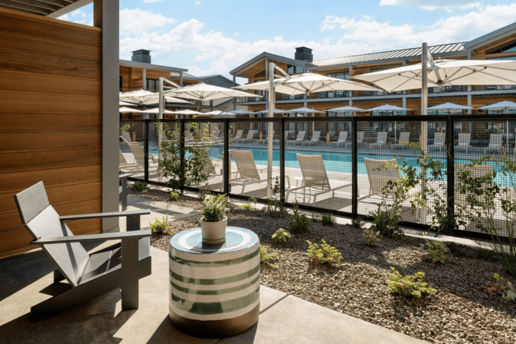 Despite being spread over eight acres with two swimming pools, terroir spa, fitness center, and over 10,000 square feet of event space for meetings and weddings, the vision for this resort is a culinary-forward approach. Hotel registration takes place at a butcher block-inspired desk inside the lively restaurant. It leaves no doubt about the food-first vibe, as guests can enjoy welcome canapes and botanical beverages.