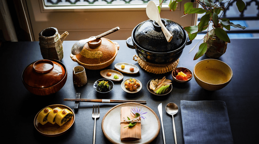 Surrounded by the vineyards of Sonoma’s Dry Creek Valley, 24 acres of fertile farm land burst with Kyoto carrots, Komatsuna mustard, Negi onions, and red ace beets. Nearby, in downtown Healdsburg, farmers and producers deliver daily freshness to SingleThread’s transparent kitchen. It’s an eye-popping first look inside. “Like dining in our own home,” says owner and Chef Kyle Connaughton, who creates the Japanese-inspired menu. His wife, owner Katrina Connaughton, manages the farm and a floral design team. Everything is an element that harmoniously perfects the final inch that defines SingleThread’s guest experience.
