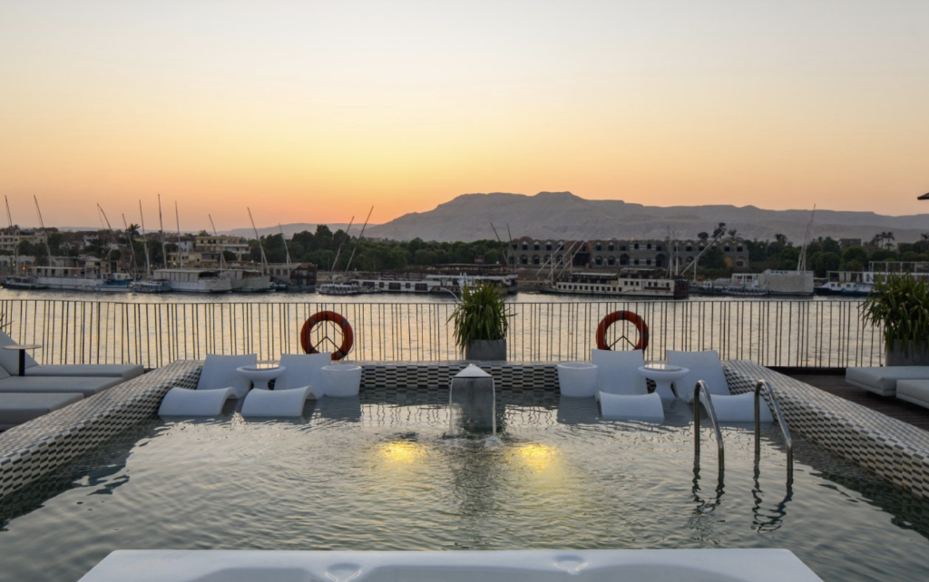 Head to the upper deck and the wicker chairs make way for lounges and a tiled pool. Call it the deck of serenity, where you can lazily watch ancient history pass by under the waning Egyptian sun.