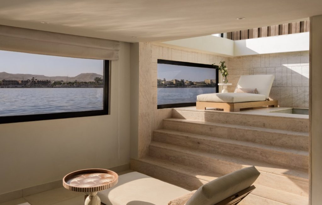 Well, things have changed. Cruising the Nile hasn’t had so much a touch-up as a complete face-lift. Paddle steamers today offer pools and spas for the weary for upwards of hundreds of guests. After a day of wandering through temples on bespoke tours, dining and self-care take over on board. A few are taking a different turn. The Oberoi Zahra and Storia the Dahabeya are exemplary of a luxe approach with the Waldorf-Astoria set to launch late 2026.