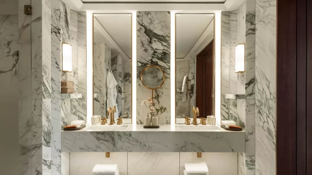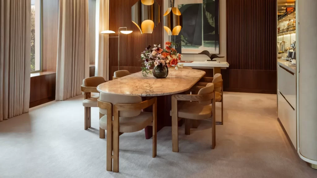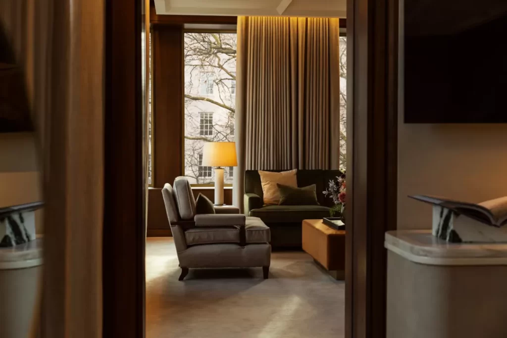 Rooms? No. These are suites. All 144 of them. Because regular rooms are for people without gold-plated business cards. The interiors are dreamed up by the French designer Joseph Dirand, who basically took warm walnut, creamy marble, brass accents, and giant windows, and made them all scream “I belong in Architectural Digest!” Some suites overlook Grosvenor Square, others give you views of London’s rooftops. But if you’re in the mood to live large — as in, “I’m-not-leaving-this-room-ever” large — book the Chancery House. It’s basically a penthouse apartment disguised as a hotel suite. You get an enormous living room, a proper library with real books, a dining room for six, a kitchen, and so much light you’ll feel like a plant in spring.