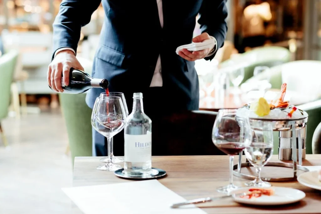 But the real draw is the tableside action. The Champagne cart rolls through the dining room like a parade float, followed closely by the Bloody Mary cart, which arrives fully loaded and ready for customization. And then there’s the caviar service, which appears tableside with a mother‑of‑pearl spoon before you’ve even decided if you’re hungry.
