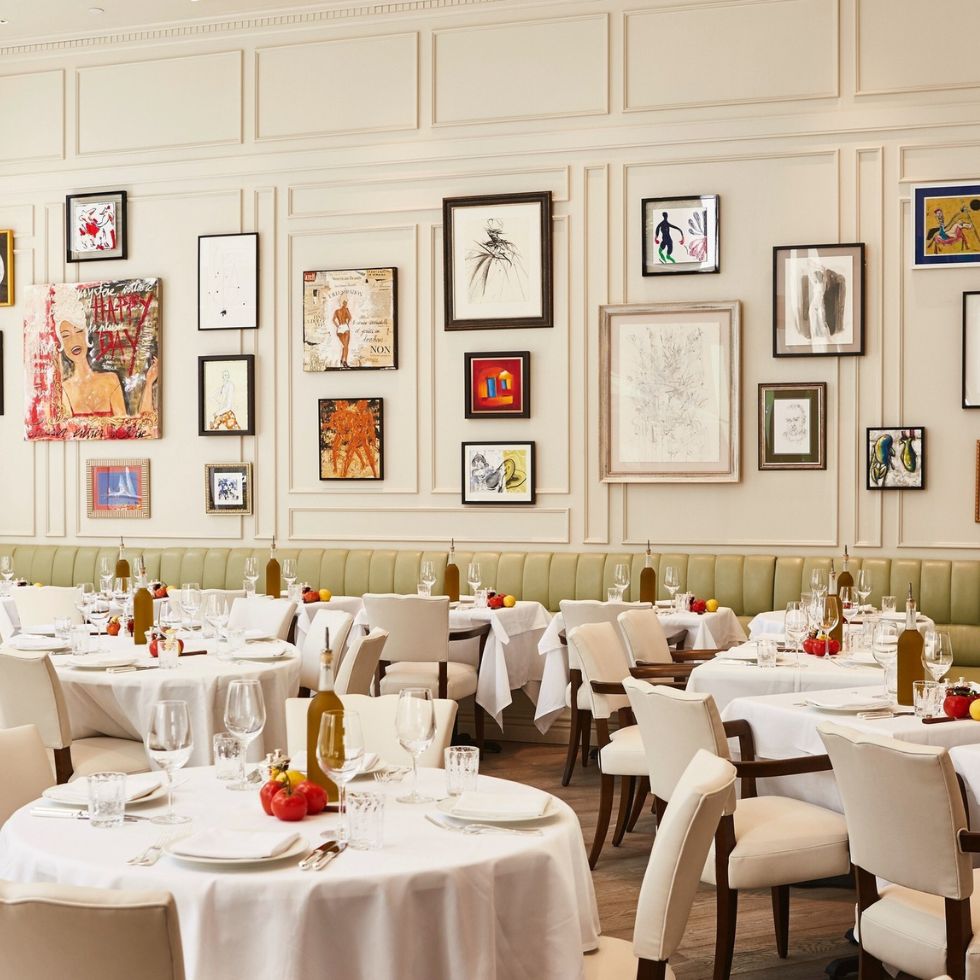 You can expect the signature interiors of the LPM Restaurants blending the Belle Époque—’the beautiful age’ in France between two wars. It’s all about contemporary details for a tastefully glitzy dining experience. This is exemplified in a mix of white china, fine linens, and marble accents, as well as 20th-century artworks from the South of France, 19th-century gilt and harlequin mirrors, and organically unruly flower arrangements. The restaurants also feature large open spaces with rooms buzzing with dinner talk, but none of the claustrophobic feel that tends to follow buzzy restaurants. The hum of Mediterranean Jazz adds to the ease of the experience.