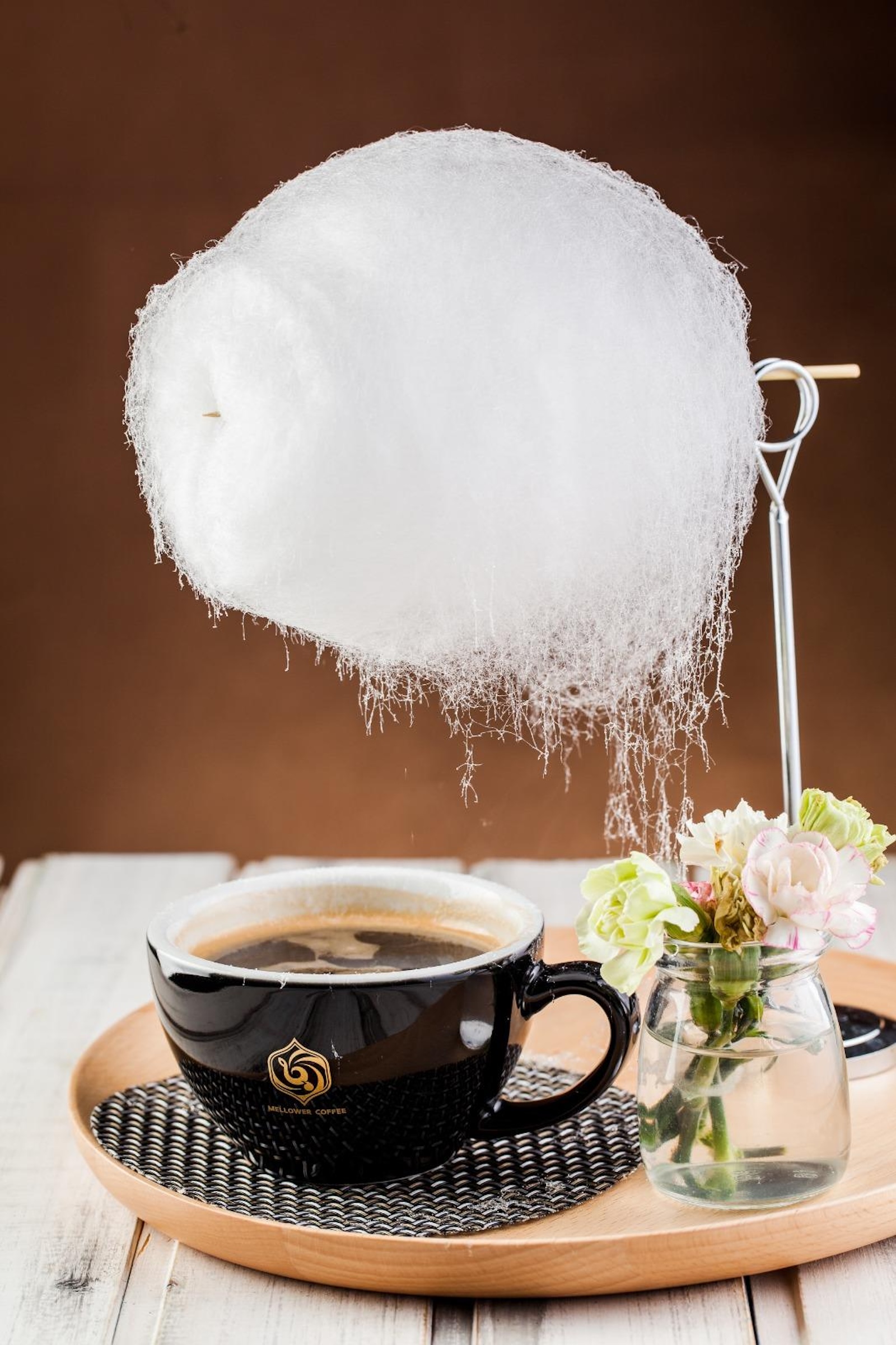The aptly named Sweet Little Rain is a simple but ingenious concept. It consists of a large, hot cup of Americano over which a white and delicate ball of cotton candy is suspended, much like a rain cloud. The steam from the Americano melts the cotton candy, which drips gently into the coffee below. The result is a strong and sweet cup of a joe – and a show (albeit a very slow-moving one). Needless to say, it makes for great Instagram posts or TikToks.