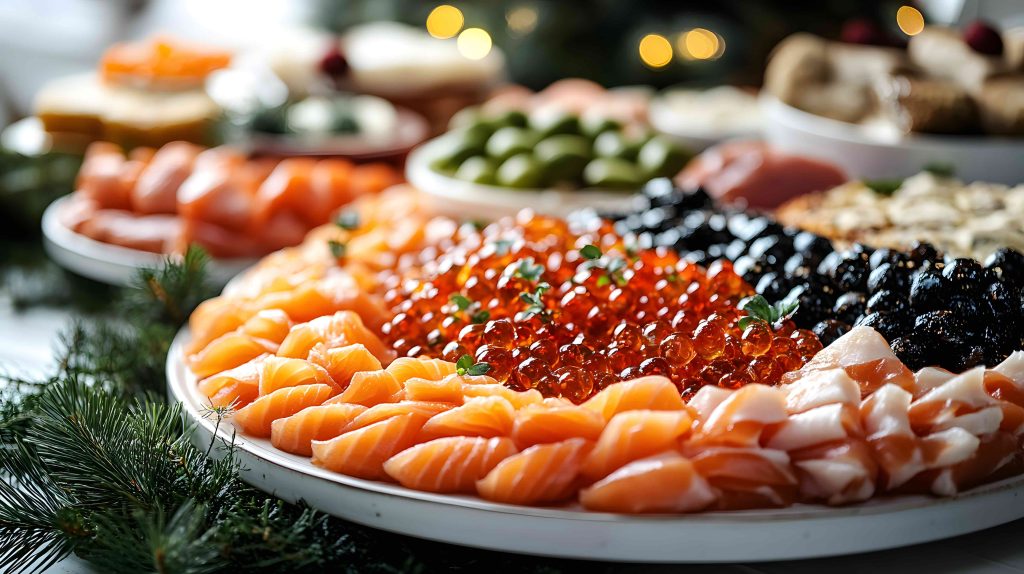 “Hygge” is a Scandinavian term that means coziness, and when shared with friends, it refers to the conviviality of a group that gathers, typically over food. And there’s nothing that looks prettier than an overflowing buffet with Scandinavian food. The colorful salads, beets, cucumbers, salmon and sweets make for an impressive table. There’s a warmth to the whole vibe that comes together over a Scandinavian buffet, especially over the holidays. This is a menu of Scandinavian recipes that you can make for Christmas Eve, Christmas Day, a cozy New Year’s Day or cold winter weekend.