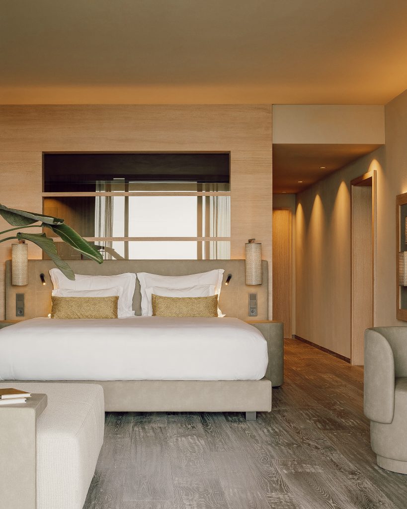 Cape of Senses is about 2-and-a-half hours drive from Milan through charming small towns. However, as you pull up to the hotel, it’s a juxtaposition of modern and sleek architecture against the classic Alpine vibe of Lake Garda. Throughout, the architecture is minimalist with steel and stone — but that’s not to say it’s cold or medical. Instead, the modern design has a mountain lodge warmth to the common areas that play off the outdoors with large floor-to-ceiling windows.