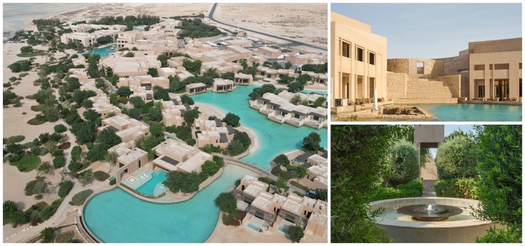 The Zulal Wellness Resort’s location is unique and surprising. Situated at the very tip of Northern Qatar, the property is sandwiched between the Arabian desert and Persian Gulf. Of course that means great views and utmost tranquility. The property blends harmoniously into its environment, thanks to low, sand-colored buildings. The exterior design and the surrounding landscape alone will have your blood pressure drop instantly. Needless to say that the lagoon-style pool surrounded by shading trees, and the seaside tennis court, only add to the appeal.