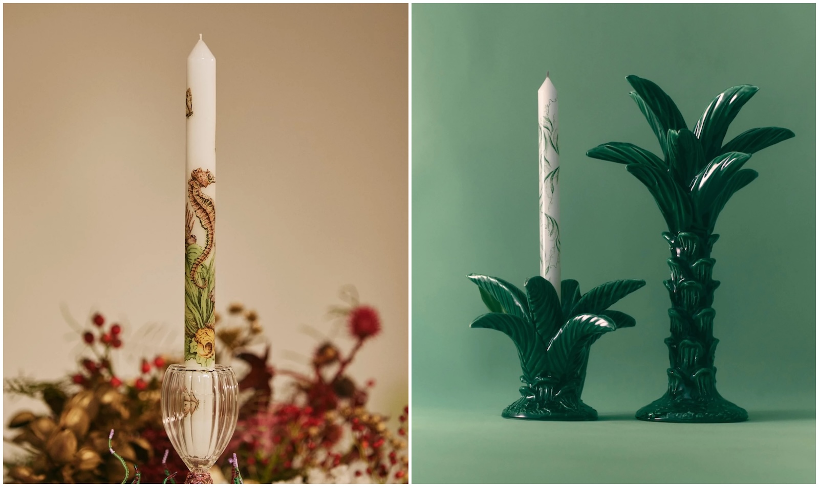 The Cabinet de la Mer theme is part of a new ocean-focused collection. The candles feature colorful seahorses, corals, and shells to transport owners deep into an underwater world.
