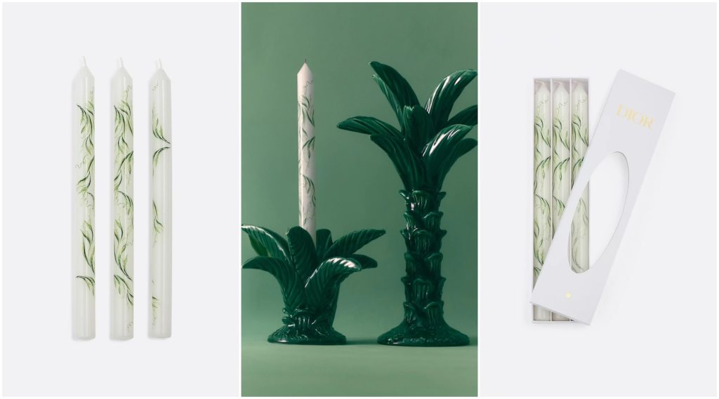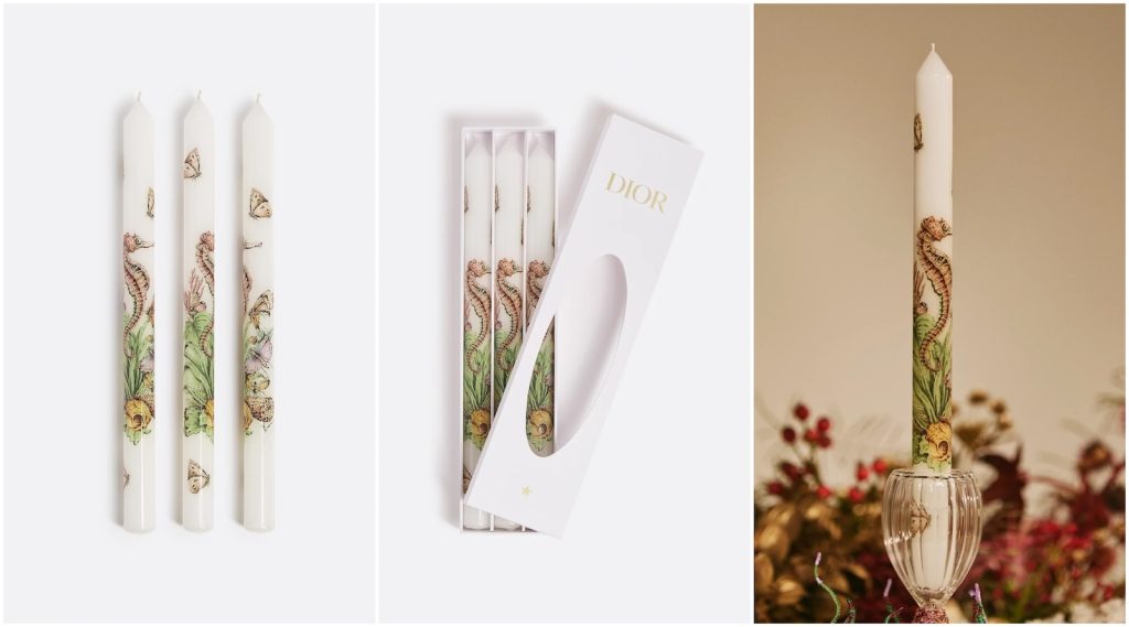 Although Dior started as a women’s fashion house in 1946, today, it makes more than must-have clothes – much, much more. Over the past 80 years, the luxury brand has expanded its line of products to include scents, jewelry, bags, cosmetics, and even home goods. Plates, bowls, vases, baskets, table and bed linens, photo frames, cutlery – Dior does it all. Even candles.