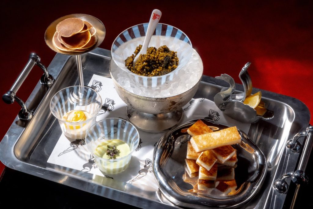 Once you’ve made it to the second floor of the old carriage house, you’ll be greeted by wood-paneled ceilings, black furniture, and red velvety carpet inspired by late architect and designer Carlo Mollino. Your martini and other seasonal specialty cocktails will come in Baccarat crystal, while bar snacks are all about your guilty pleasures. You choose if that means a bowl of caviar, candy (or both), or Foie Gras mousse with Brioche and Jam. Custom card games are also soon to come, so stay tuned.